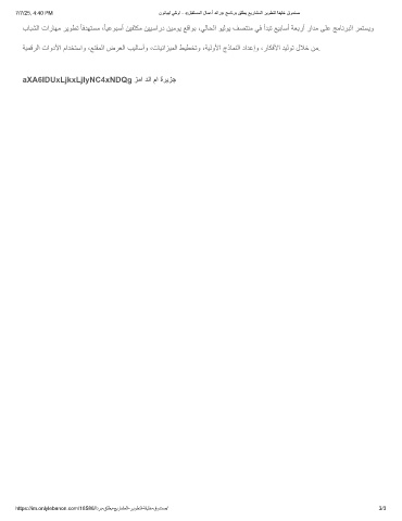 بﺎﺑﺷﻟا تارﺎﮭﻣ رﯾوطﺗ ً ﺎﻓدﮭﺗﺳﻣ ،ً ﺎﯾﻋوﺑﺳأ نﯾﻔﺛﻛﻣ نﯾﯾﺳارد نﯾﻣوﯾ ﻊﻗاوﺑ ،ﻲﻟﺎﺣﻟا وﯾﻟوﯾ فﺻﺗﻧﻣ ﻲﻓ أدﺑﺗ ﻊﯾﺑﺎﺳأ ﺔﻌﺑرأ رادﻣ ﻰﻠﻋ ﺞﻣﺎﻧرﺑﻟا رﻣﺗﺳﯾو