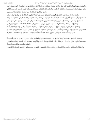 7/7/25, 4:40 PM لﺑﻘﺗﺳﻣﻟا لﺎﻣﻋأ دﺋار" ﺞﻣﺎﻧرﺑ ادﻏ ﻖﻠطﯾ ﻊﯾرﺎﺷﻣﻟا رﯾوطﺗﻟ ﺔﻔﯾﻠﺧ قودﻧﺻ" - Nas News UAE