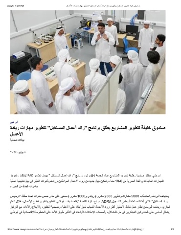 7/7/25, 4:39 PM لﺎﻣﻋﻷا ةدﺎﯾر تارﺎﮭﻣ رﯾوطﺗﻟ "لﺑﻘﺗﺳﻣﻟا لﺎﻣﻋأ دﺋار" ﺞﻣﺎﻧرﺑ ﻖﻠطﯾ ﻊﯾرﺎﺷﻣﻟا رﯾوطﺗﻟ ﺔﻔﯾﻠﺧ قودﻧﺻ