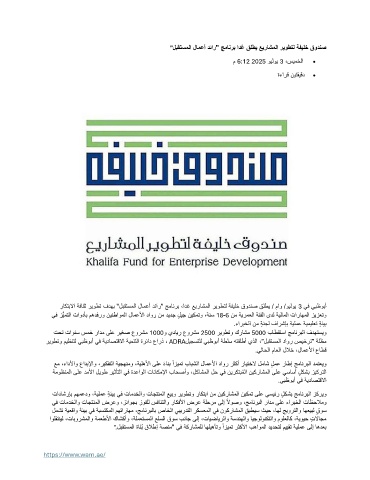 " لبقتسملا لامعأ دئار" جمانرب ادغ قلطي عيراشملا ريوطتل ةفيلخ قودنص