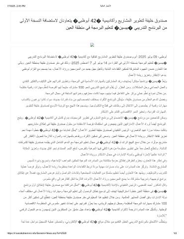 ﻲﺑﯾردﺗﻟا ﺞﻣﺎﻧرﺑﻟا ﺔﻓﺎﺿﺗﺳﻻ �ﻲﺑظوﺑأ 42� ﺔﯾﻣﯾدﺎﻛأ ﻊﻣ ﺔﯾﻗﺎﻔﺗا ﻊﯾرﺎﺷﻣﻟا رﯾوطﺗﻟ ﺔﻔﯾﻠﺧ قودﻧﺻ مرﺑأ :2025 وﯾﻟوﯾ 09 ،ﻲﺑظوﺑأ