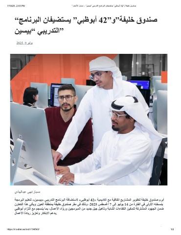 ﺔﺠﻣﺮﺒﻟا ﻢﯿﻠﻌﺘﻟ «ﻦﯿﺴﯿﺑ» ﻲﺒﯾرﺪﺘﻟا ﺞﻣﺎﻧﺮﺒﻟا ﺔﻓﺎﻀﺘﺳﻻ «ﻲﺒظﻮﺑأ 42» ﺔﯿﻤﯾدﺎﻛأ ﻊﻣ ﺔﯿﻗﺎﻔﺗا ﻊﯾرﺎﺸﻤﻟا ﺮﯾﻮﻄﺘﻟ ﺔﻔﯿﻠﺧ قوﺪﻨﺻ مﺮﺑأ
