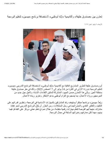 7/10/25, 2:43 PM ﺔﺟﻣرﺑﻟا مﯾﻠﻌﺗﻟ «نﯾﺳﯾﺑ» ﺞﻣﺎﻧرﺑ ﺔﻓﺎﺿﺗﺳﻻ «ﻲﺑظوﺑأ 42» ﺔﯾﻣﯾدﺎﻛأو «ﺔﻔﯾﻠﺧ قودﻧﺻ» نﯾﺑ نوﺎﻌﺗ | ﺔﯾﺗارﺎﻣﻹا دﺎﺣﺗﻻا ﺔﻔﯾﺣﺻ