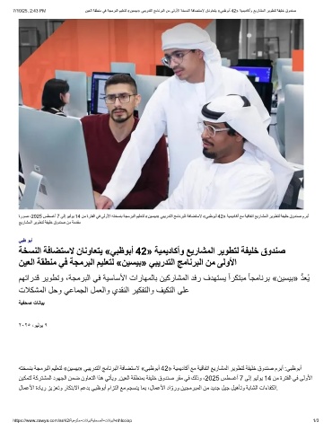 7/10/25, 2:43 PM نﯾﻌﻟا ﺔﻘطﻧﻣ ﻲﻓ ﺔﺟﻣرﺑﻟا مﯾﻠﻌﺗﻟ «نﯾﺳﯾﺑ» ﻲﺑﯾردﺗﻟا ﺞﻣﺎﻧرﺑﻟا نﻣ ﻰﻟوﻷا ﺔﺧﺳﻧﻟا ﺔﻓﺎﺿﺗﺳﻻ نﺎﻧوﺎﻌﺗﯾ «ﻲﺑظوﺑأ 42» ﺔﯾﻣﯾدﺎﻛأو ﻊﯾرﺎﺷﻣﻟا رﯾوطﺗﻟ ﺔﻔﯾﻠﺧ قودﻧﺻ
