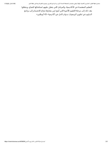 .«ﻲﺒﻇﻮﺑأ 42» ﺔﻴﻤﻳدﺎﻛأ ﻲﻓ ﻞﻣﺎﻛ ماوﺪﺑ تﺎﻴﺠﻣﺮﺒﻟا ﺮﻳﻮﻄﺗ ﻲﻓ مﻮﻠﺑﺪﻟا