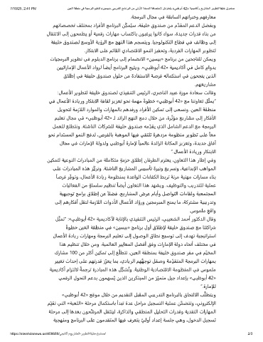 «ﻲﺒﻇﻮﺑأ 42» ﻊﻗﻮﻣ لالﺧ ﻦﻣ ﻢﻳﺪﻘﺘﻟا ﻞﺒﻘﻤﻟا ﻲﺒﻳرﺪﺘﻟا ﺞﻣﺎﻧﺮﺒﻟﺎﺑ قﺎﺤﺘﻟالا ﺐﱠﻠﻄﺘﻳو