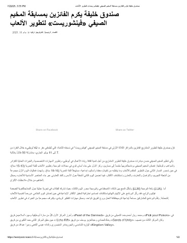 7/22/25, 3:35 PM بﺎﻌﻟﻷا رﯾوطﺗﻟ «تﺳﯾروﺷﻧﯾﻓ» ﻲﻔﯾﺻﻟا مﯾﺧﻣﻟا ﺔﻘﺑﺎﺳﻣﺑ نﯾزﺋﺎﻔﻟا مرﻛﯾ ﺔﻔﯾﻠﺧ قودﻧﺻ