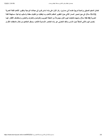 ﺔﺋﻔﻟا ًﺎﻓدﮭﺗﺳﻣ ،ﺔﯾﻋادﺑإ بﯾﻟﺎﺳأو ةدﻘﻌﻣ ٍتﺎﯾﻧﻘﺗ نﻣ ﮫﺑﻠطﺗﯾ ﺎﻣو بﺎﻌﻟﻸﻟ مدﻘﺗﻣﻟا رﯾوطﺗﻟا لوﺣ ﻲﻧﺎﺛﻟا رﺎﺳﻣﻟا روﺣﻣﺗ نﯾﺣ ﻲﻓ ،(ﺔﻧﺳ 15-13)