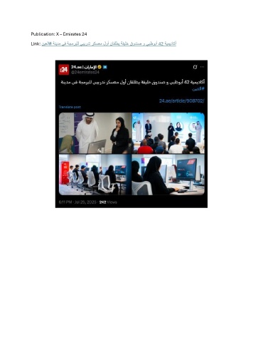 Publication: X – Emirates 24 Link: نيعلا# ةنيدم يف ةجمربلل يبيردت ركسعم لوأ ناقلطي ةفيلخ قودنص و يبظوبأ 42 ةيميداكأ