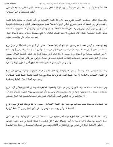 ﻲنبﺗ ﻰﻠﻋ ﻊجشيو ،ﻲﺋاذﻐﻟا نﻣﻷا تﻻدﻌﻣ نﻣ ززﻌي يذﻟا ”تارﺎﻣﻹا عرزا“ ﻲنطوﻟا ﺞﻣﺎﻧربﻟا تﺎﻓدﻬتسﻣ ﻊﻣ ﺎيﺷﺎمﺗ عﺎطﻘﻟا اذﻫ