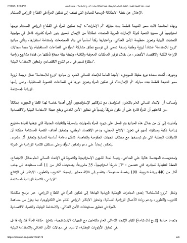ﺎﻬﺟوﺗ مادتسمﻟا ﻲﻋارزﻟا عﺎطﻘﻟا ﻲﻓ ةأرمﻟا نيكمﺗ دﻌي“ :،”تارﺎﻣﻹا مأ“ كرﺎبﻣ تنﺑ ﺔمطﺎﻓ ﺔخيشﻟا ومﺳ تﻟﺎﻗ ﺔبﺳﺎنمﻟا ﻩذﻬبو