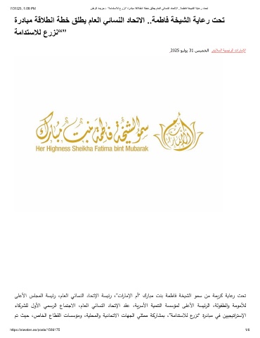 ﻰﻠﻋﻷا سﻠجمﻟا ﺔسيﺋر ،مﺎﻌﻟا ﻲﺋﺎسنﻟا دﺎحﺗﻹا ﺔسيﺋر ،”تارﺎﻣﻹا مأ“ كرﺎبﻣ تنﺑ ﺔمطﺎﻓ ﺔخيشﻟا ومﺳ نﻣ ﺔميرك ﺔيﺎﻋر تحﺗ