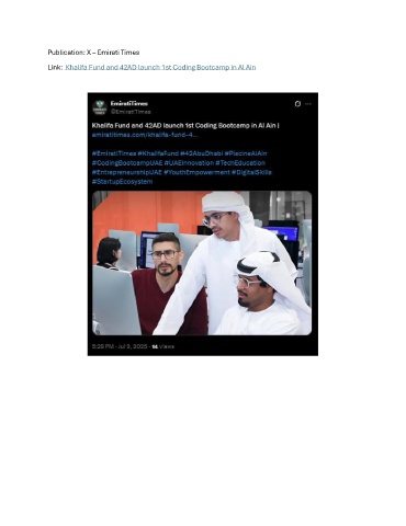Publication: X – Emirati Times Link: Khalifa Fund and 42AD launch 1st Coding Bootcamp in Al Ain