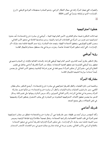 ﻦﻤﻀﻳ ﻞﺑ ،ﺋاﺬﻐﻟا ﻦﻣﻷا ﻖﻴﻘﺤﺗو ﺔﻴﺟﺎﺘﻧﻹا ﺎﻨﺗارﺪﻗ ﺰﻳﺰﻌﺗ ﻓ ﻂﻘﻓ ﻢﻬﺴﻳ ﻻ ةأﺮﻤﻟا ﻦﻴﻤﺗ نأ ﻟإ ًاﺮﻴﺸﻣ ،ﻋارﺰﻟا عﺎﻄﻘﻟا