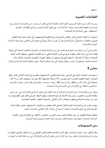 ﺔﻟوﺪﻟا ﻓ ﺔﻴﻋارﺰﻟا ﺔﻴﻤﻨﺘﻟا ﻞﺒﻘﺘﺴﻣ ﻠﻋو ،ةأﺮﻤﻟا ﻦﻴﻤﺗو ﻢﻋد ﻠﻋ ًﺎﺑﺎﺠﻳإ ﺲﻌﻨﻳ سﻮﻤﻠﻣ ﺮﺛأ ﻖﻴﻘﺤﺗو ةردﺎﺒﻤﻠﻟ ﺔﻴﺳﺎﺳأ.