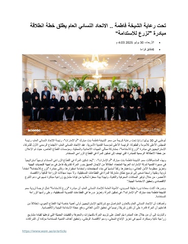 ةسيئر ،ماعلا يئاسنلا داحتلإا ةسيئر ،"تاراملإا مأ" كرابم تنب ةمطاف ةخيشلا ومس نم ةميرك ةياعر تحت /ماو /ويلوي 30 يف يبظوبأ