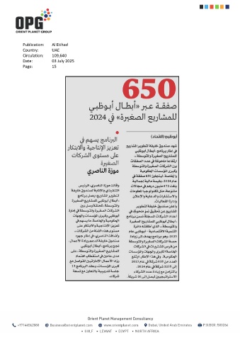 Publication: Al Etihad Country: UAE Circulation: 109,640 Date: 03 July 2025 Page: 15