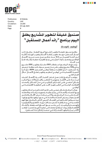 Publication: Al Wahda Country: UAE Circulation: 19,400 Date: 04 July 2025 Page: 8