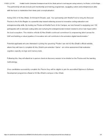 7/10/25, 2:27 PM Khalifa Fund for Enterprise Development and 42 Abu Dhabi partner to host inaugural coding bootcamp, the Piscine, in Al Ain Regio…