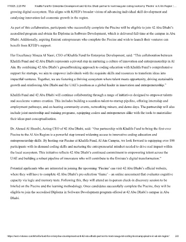 7/10/25, 2:29 PM Khalifa Fund for Enterprise Development and 42 Abu Dhabi partner to host inaugural coding bootcamp ‘Piscine’ in Al Ain Region | …