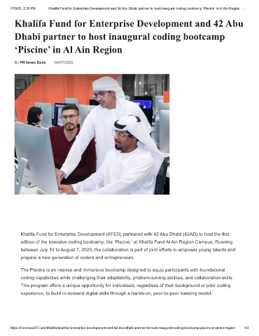 7/10/25, 2:30 PM Khalifa Fund for Enterprise Development and 42 Abu Dhabi partner to host inaugural coding bootcamp ‘Piscine’ in Al Ain Region - …