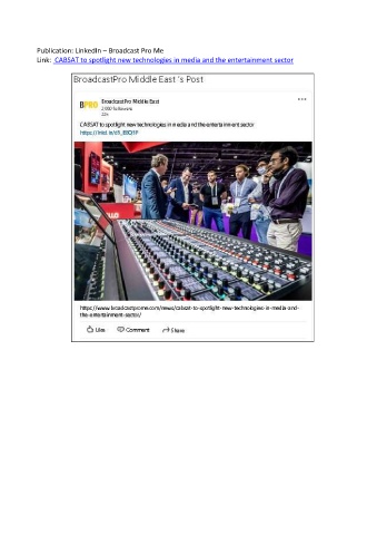 Publication: LinkedIn – Broadcast Pro Me Link: CABSAT to spotlight new technologies in media and the entertainment sector