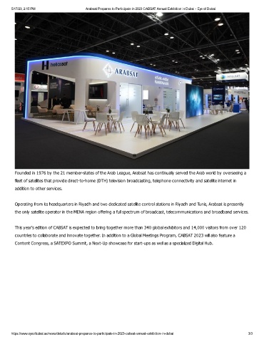 5/17/23, 2:15 PM Arabsat Prepares to Participate in 2023 CABSAT Annual Exhibition in Dubai - Eye of Dubai