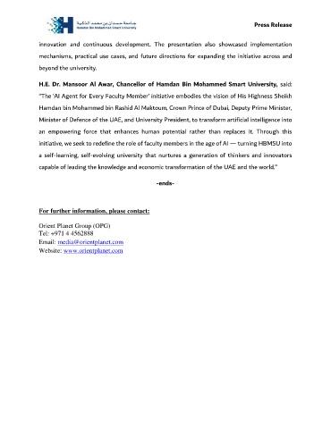 H.E. Dr. Mansoor Al Awar, Chancellor of Hamdan Bin Mohammed Smart University, said: