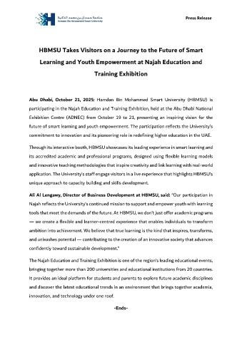 Abu Dhabi, October 21, 2025: Hamdan Bin Mohammed Smart University (HBMSU) is