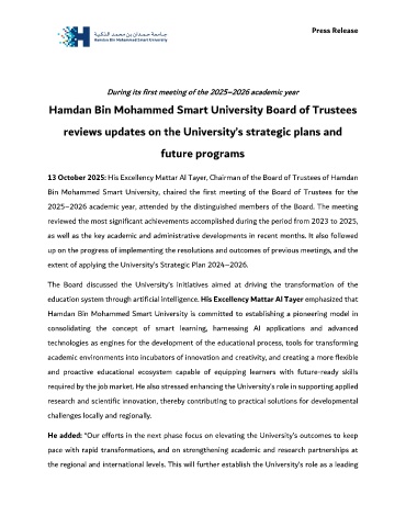 Hamdan Bin Mohammed Smart University is committed to establishing a pioneering model in