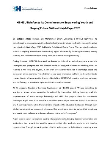 challenges. Najah Expo 2025 provides a valuable opportunity to showcase HBMSU’s distinctive
