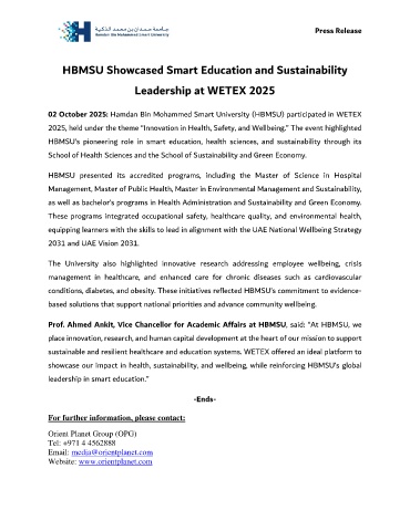 02 October 2025: Hamdan Bin Mohammed Smart University (HBMSU) participated in WETEX