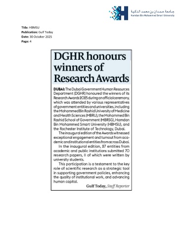 Title: HBMSU Publication: Gulf Today Date: 30 October 2025 Page: 4