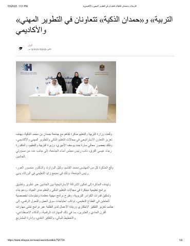 10/20/25, 1:01 PM «ﻲﻣﯾدﺎﻛﻷاو ﻲﻧﮭﻣﻟا رﯾوطﺗﻟا ﻲﻓ نﺎﻧوﺎﻌﺗﺗ «ﺔﯾﻛذﻟا نادﻣﺣ»و «ﺔﯾﺑرﺗﻟا