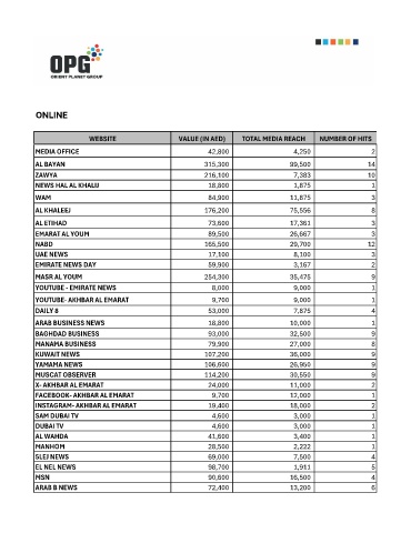 WEBSITE VALUE (IN AED) TOTAL MEDIA REACH NUMBER OF HITS