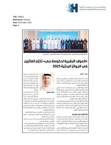 Title: HBMSU Publication: Al Bayan Date: 30 October 2025 Page: 9