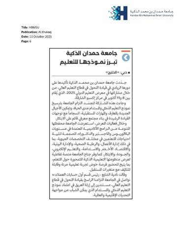 Title: HBMSU Publication: Al Khaleej Date: 11 October 2025 Page: 6