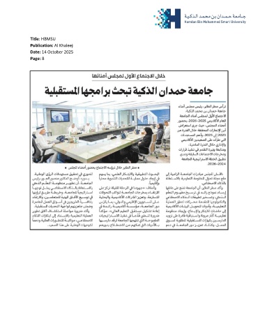 Title: HBMSU Publication: Al Khaleej Date: 14 October 2025 Page: 8