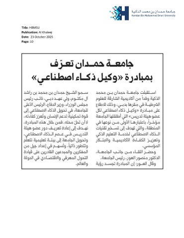 Title: HBMSU Publication: Al Khaleej Date: 23 October 2025 Page: 10