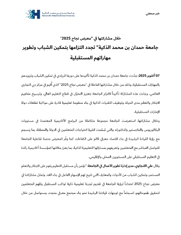 ﻢﻫﺪﻳوﺰﺗو بﺎﺒﺸﻟا ﻦﻴﻜﻤﺗ ي ﻓ يدﺎﻳﺮﻟا ﺎﻫرود ى�ﻋ ﺎﻫﺪﻴﻛﺄﺗ ﺔﻴﻛﺬﻟا ﺪﻤﺤﻣ ﻦﺑ ناﺪﻤﺣ ﺔﻌﻣﺎﺟ تدّﺪﺟ : 2025 ﺮﺑﻮﺘﻛ أ 07