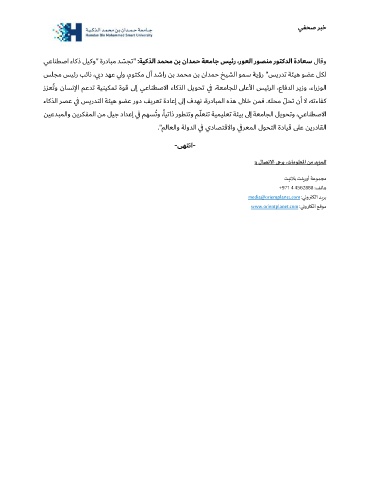 زﺰﻌُﺗو نﺎﺴﻧﻹا ﻢﻋﺪﺗ ﺔﻴﻨﻴﻜﻤﺗ ةﻮﻗ ىﻟإ ﻲﻋﺎﻨﻄﺻﻻا ءﺎﻛﺬﻟا ﻞﻳﻮﺤﺗ ي ﻓ ،ﺔﻌﻣﺎﺠﻠﻟ ى�ﻋﻷا ﺲﻴﺋﺮﻟا ،عﺎﻓﺪﻟا ﺮﻳزو ،ءارزﻮﻟا