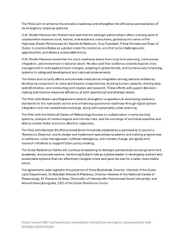 The MoUs aim to enhance the emirate’s readiness and strengthen the efficiency and resilience of