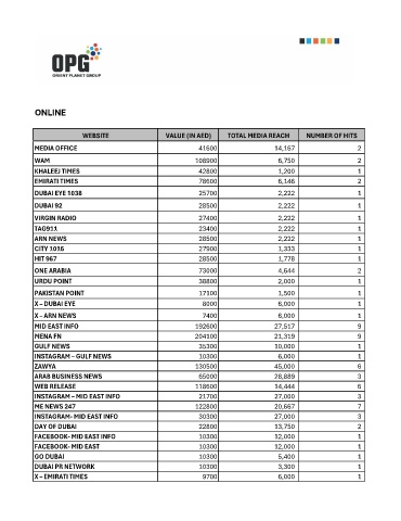 WEBSITE VALUE (IN AED) TOTAL MEDIA REACH NUMBER OF HITS