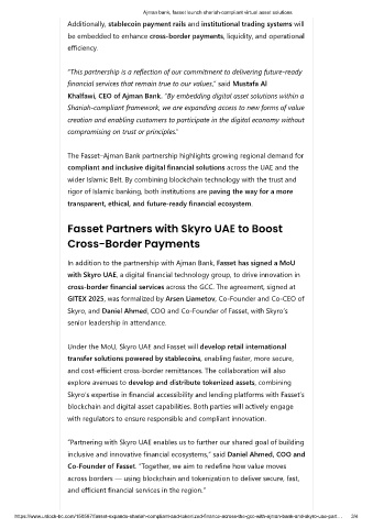 https://www.unlock-bc.com/150587/fasset-expands-shariah-compliant-and-tokenized-finance-across-the-gcc-with-ajman-bank-and-skyro-uae-part… 3/4