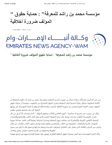 4/23/25, 9:58 AM " 24 نوﯾﺟﯾﻠﺧ - ﺔﯾﻗﻼﺧأ ةرورﺿ فﻟؤﻣﻟا قوﻘﺣ ﺔﯾﺎﻣﺣ : "ﺔﻓرﻌﻣﻠﻟ دﺷار نﺑ دﻣﺣﻣ ﺔﺳﺳؤﻣ