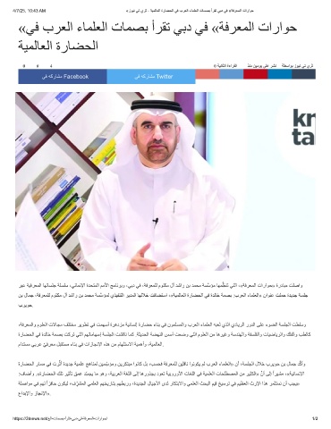 ﺮﺒﻋ ﺔﯿﻓﺮﻌﻤﻟا ﺎﮭﺗﺎﺴﻠﺟ ﺔﻠﺴﻠﺳ ،ﻲﺋﺎﻤﻧﻹا ةﺪﺤﺘﻤﻟا ﻢﻣﻷا ﺞﻣﺎﻧﺮﺑو ،ﻲﺑد ﻲﻓ ،ﺔﻓﺮﻌﻤﻠﻟ مﻮﺘﻜﻣ لآ ﺪﺷار ﻦﺑ ﺪﻤﺤﻣ ﺔﺴﱠﺳﺆﻣ ﺎﮭﻤِﻈﻨﺗ ﻲﺘﻟا ،«ﺔﻓﺮﻌﻤﻟا تاراﻮﺣ» ةردﺎﺒﻣ ﺖﻠﺻاو