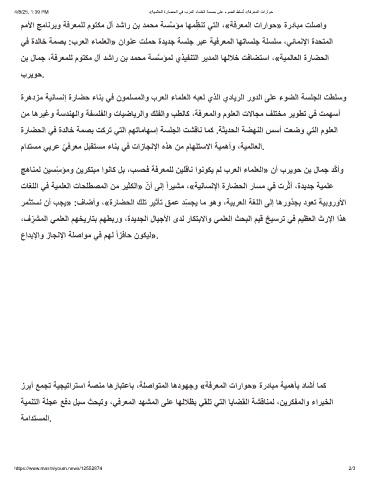 4/8/25, 1:39 PM «ﺔﯾﻣﻟﺎﻌﻟا ةرﺎﺿﺣﻟا ﻲﻓ برﻌﻟا ءﺎﻣﻠﻌﻟا ﺔﻣﺻﺑ ﻰﻠﻋ ءوﺿﻟا طﻠﺳُﺗ «ﺔﻓرﻌﻣﻟا تاراوﺣ