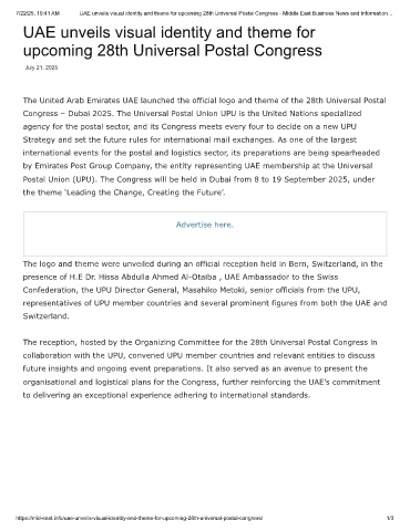 https://mid-east.info/uae-unveils-visual-identity-and-theme-for-upcoming-28th-universal-postal-congress/ 1/3
