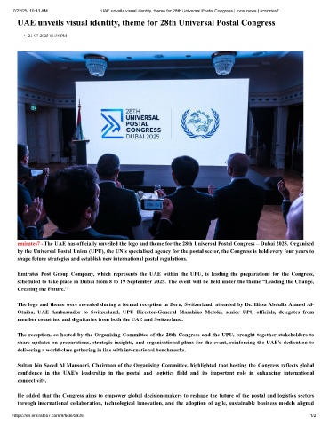 7/22/25, 10:41 AM UAE unveils visual identity, theme for 28th Universal Postal Congress | local news | emirates7