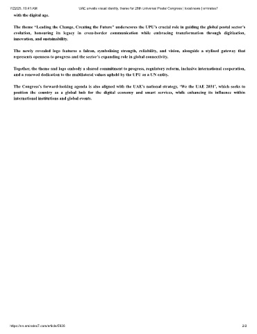 7/22/25, 10:41 AM UAE unveils visual identity, theme for 28th Universal Postal Congress | local news | emirates7